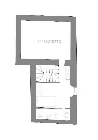 Appartamento con entrata indipendente su 4 livelli. Salotto con camino in pietro del 500, cucina e servizio. 3 camere, 3 bagni, 1 ripostiglio. Giardino privato.